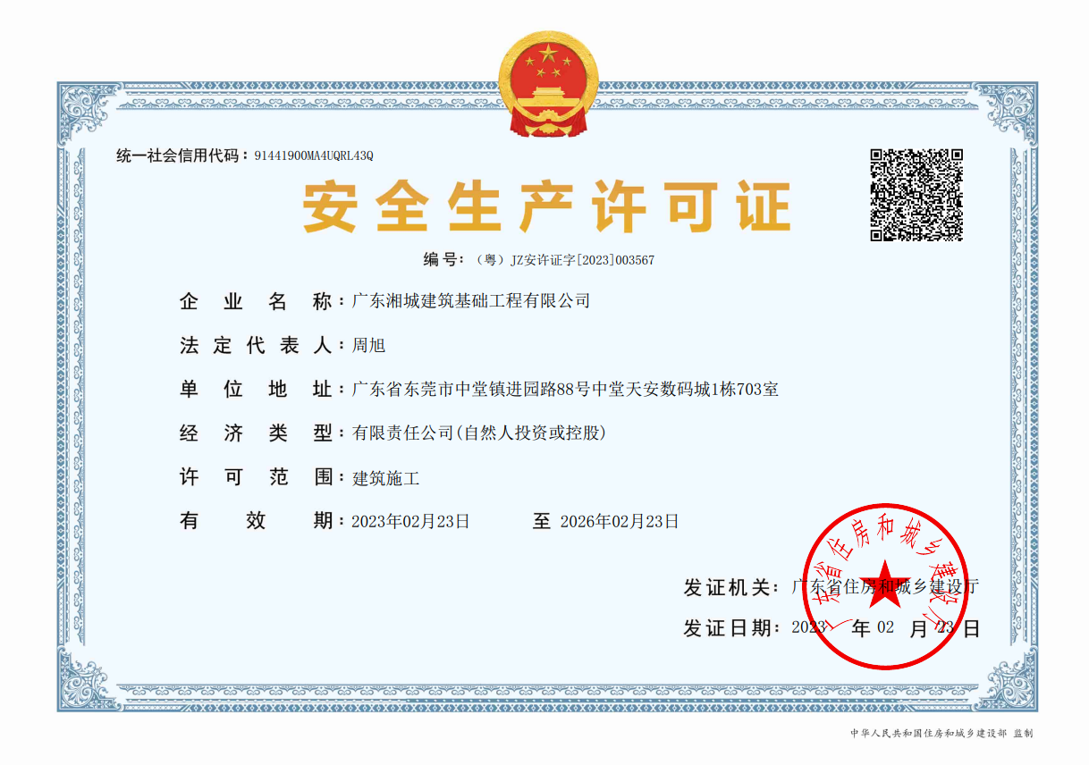 廣東湘城建筑基礎(chǔ)工程有限公司,成立于2016年,注冊(cè)資金4888萬(wàn)元,持有地基基礎(chǔ)工程專(zhuān)業(yè)承包壹級(jí)資質(zhì),具有安全生產(chǎn)許可證。可承接各種基礎(chǔ)類(lèi)施工,包括各類(lèi)樁基礎(chǔ)、基坑支護(hù)、邊坡支護(hù)、地基強(qiáng)夯處理等施工業(yè)務(wù)。公司為地基與基礎(chǔ)工程專(zhuān)業(yè)承包、工程施工、技術(shù)咨詢(xún)、技術(shù)開(kāi)發(fā)、技術(shù)服務(wù)、信息咨詢(xún)實(shí)體型企業(yè)。